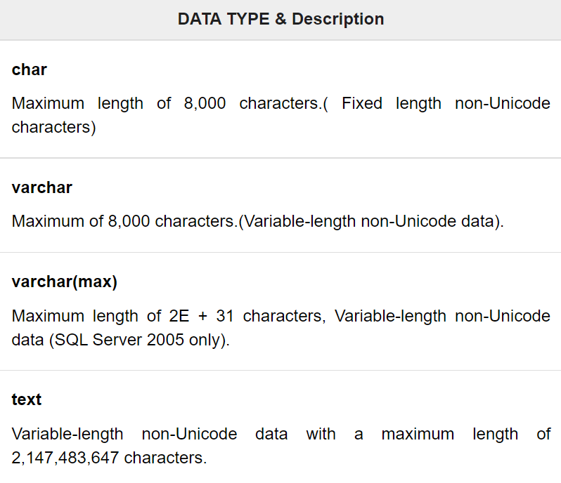 • SQL Data Type is an attribute that specifies the type of data of any object.
